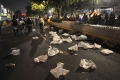 An airplane is seen flying across the November “Beaver Moon,” which appears larger and brighter due to its close proximity to Earth, on Thursday, November 6, 2025, in Los Angeles, California. NICK UT/PI