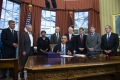 United States President Donald J Trump, center, in the Oval Office of the White House in Washington, DC, US, on Thursday, Nov. 6, 2025. Eli Lilly & Co. and Novo Nordisk A/S secured deals with the Trump administration to slash prices for their blockbuster weight-loss drugs in exchange for tariff relief and wider access for Medicare patients. AARON SCHWARTZ/POO/CNP/PI