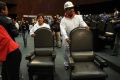 United States Secretary of War Pete Hegseth and United States Air Force General Dan Caine, Chair, Joint Chiefs of Staff listen as US President Donald J Trump conducts a press conference in the James S Brady Press Briefing Room of the White House in Washington, DC, USA, on Monday April 6, 2026. The President is expected to take questions on the Iran War and oil prices. YURI GRIPAS/POOL/CNP/PI