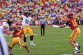 #11 Mark Gronowski, QB of the Iowa Hawkeyes makes a catch for a touchdown during their regular season Big Ten game against the USC Trojans on Saturday November 15, 2025 at the Los Angeles Coliseum in Los Angeles, California. USC defeats Iowa Hawkeyes, 26-21. JAVIER ROJAS/BNS/PI