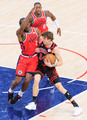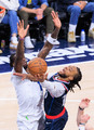 Derrick Jones Jr. #5 of the Los Angeles Clippers puts up a shot over Luke Kornet #7 of the San Antonio Spurs during a 2026 NBA regular season game on Thursday April 2, 2026 at Intuit Dome Arena in Inglewood, California. Clippers lose to Spurs, 99-118. JAVIER ROJAS/PI