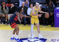 Dylan Harper #2 of the San Antonio Spurs attempts a floater as Derrick Jones Jr. #5 of the Los Angeles Clippers defends during their regular season NBA game on Thursday April 2, 2026 at Intuit Dome in Inglewood, California. Clippers lose to Spurs, 99-118. ARIANA RUIZ/PI