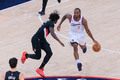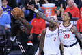 Deni Avdija #8 of the Portland Trail Blazers attempts a jump shot as Bennedict Mathurin #9 of the Los Angeles Clippers defends the basket during their regular season NBA game on Tuesday March 31, 2026 at Intuit Dome in Inglewood, California. Clippers lose to Trail Blazers, 104-114. ARIANA RUIZ/PI