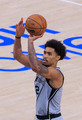 Victor Wembanyama #1 of the San Antonio Spurs on the sidelines during their regular season NBA game against the Los Angeles Clippers on Thursday April 2, 2026 at Intuit Dome in Inglewood, California. Clippers lose to Spurs, 99-118. ARIANA RUIZ/PI