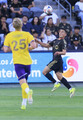 Kelvin Yeboah #9 of the Minnesota United FC battles for the ball with Justin Haak #15 of the LA Galaxy during a regular season MLS game on Saturday April 4, 2026 at Dignity Health Sports Park Stadium in Carson, California. LA Galaxy lose to Minnesota United FC, 1-2. JAVIER ROJAS/PI