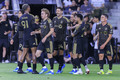 Denis Bouanga #99 of the Los Angeles Football Club scores a hat trick during their regular season MLS game against the Orlando City SC on Saturday April 4, 2026 at the BMO Stadium in Los Angeles, California. ARIANA RUIZ/PI