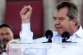 Master Gunnery Sergeant Kevin Benear sings the National Anthem at the 2026 White House Easter Egg Roll, hosted by United States President Donald J Trump and first lady Melania Trump, on the South Lawn of the White House in Washington, DC, USA, on Monday, April 6, 2026. President Trump salutes at center.It is an annual tradition that began in 1878 during the administration of US President Rutherford B Hayes. AARON SCHWARTZ/CNP/PI
